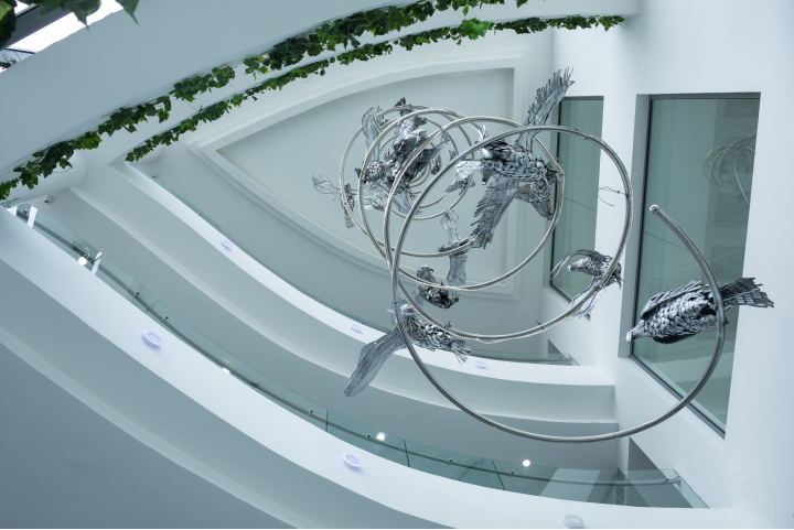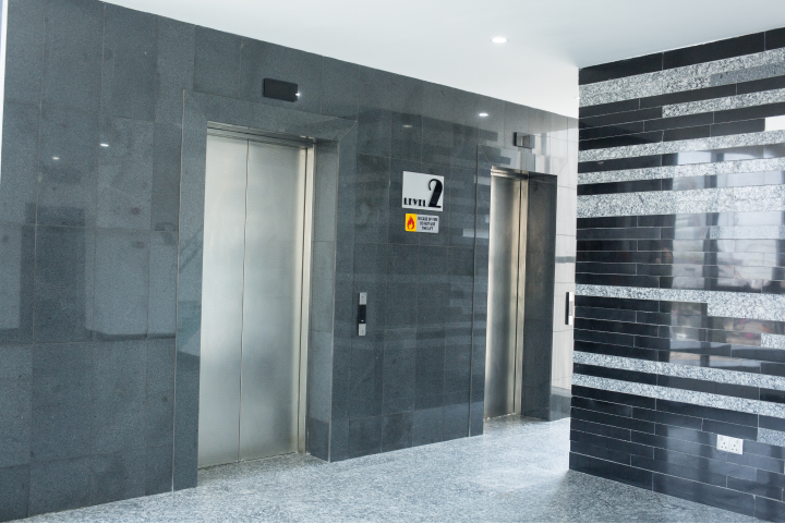 The office space is a open floor structure, with modern design inspired feature. It includes modern elevator system.